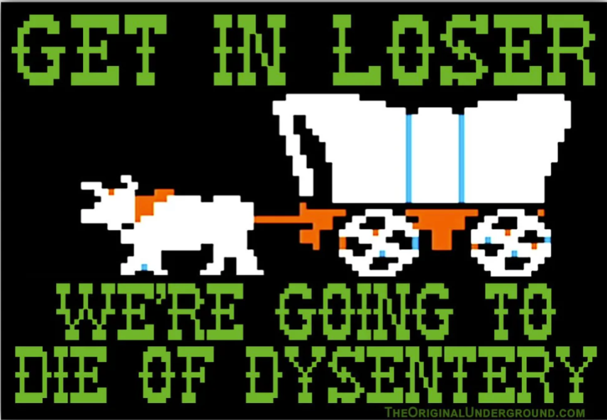 You are on the Oregon Trail. Starvation, dysentery, and cholera are waiting for you. Don’t even get me started on caulking the wagon.